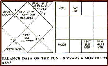 In this case, the lord of the fourth house is under the severe affliction of the MMP and hence it caused a lot of delay in the marriage. The propitiatory astral remedies suggested for Saturn, Jupiter, Rahu and Ketu helped in marriage during the sub-period of Saturn in the main period of the Moon. Later on, for prosperity and good health, the native also took advantage of the KAVACH for the functional benefic planets, the Moon, the Sun, Venus, Mercury and Mars.