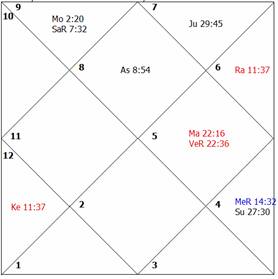 Virgo rises in the ascendant in the horoscope. Jupiter becomes the prime