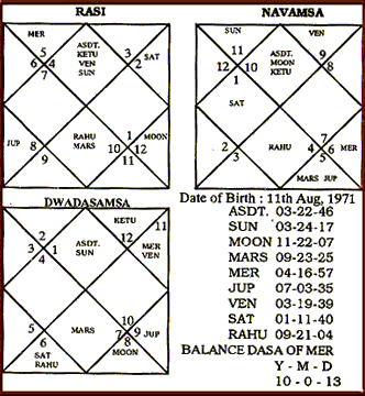 Let us now examine some charts of natives born in the ending parts of main periods of Ketu, Mercury and Venus.